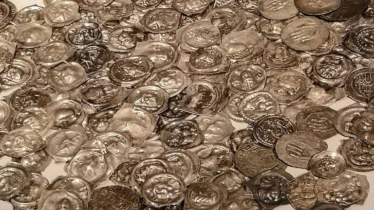 Though the objects have been studied and kept in a museum for almost a hundred years, Boehm is the first to be able to attribute them as belonging to a single family. "For me it's much easier to look at a treasure that size and say oh my gosh, that was a family. That family lost their lives." She even discovered an inscription "ANCH" which translates to a diminutive for the name Anne. "I like to think that a certain Annie was a member of the family," she says. Perhaps it was she who wore some of the rings we see, or the headband, more than 600 years ago.
