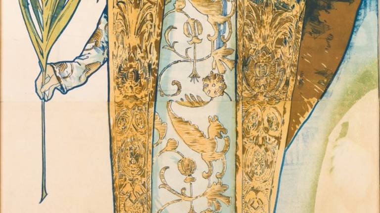 Call it being in the right place at the right time. It was the day after Christmas, 1894, and Mucha was checking proofs after hours at a printing house when the call came in for a poster to advertise the legendary actress’s latest play — ready for distribution on New Year’s Day. The quick turn-around proved no obstacle for the wildly inventive draftsman, even though he had never created a poster before and had had little success up to that point as an illustrator in Paris.