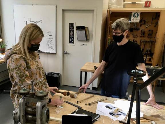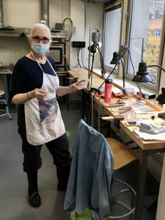 In September, smaller, staggered classes started to reopen for in-person lessons. Jewelry-making, bead work, collage, ceramics and more are offered in four-week courses. Temperatures are checked, health screenings are done for teachers and students, and hand sanitizer and masks are required. Class sizes are kept small, and in some workshops, large monitors have been installed so every student can see the instructor without having to crowd around. Some classes are given both online and in-person for those who live too far away or may not be ready to come in.