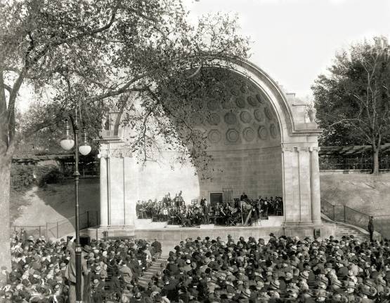 The Perfect Temporary Home The Naumburg Bandshell in Central Park was completed in 1923, about the same time another jewel of New York was being built. Temple Emanu-El, at Fifth Avenue and 65th Street, also funded by Jewish philanthropists, is an architectural and acoustic wonder. Its soaring 103-foot high ceiling and more than 60 stained glass windows are filled with spiritual symbols. This year, as the Naumburg Bandshell undergoes repairs, the summer concert series will be held in Temple Emanu-El. When this season’s musicians take the stage, they and the audiences will, in many ways, be touching history.