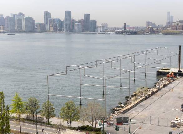A structure that appears to be the skeleton of a building rises from the waterfront. Is it unfinished? Broken? A forgotten artifact from an urban excavation? Whatever it may or may not evoke, David Hammons’ “Day’s End” across from the Whitney Museum raises questions, as was intended. It was seven years in the making. It’s the largest public artwork completed during the pandemic, and it taps into a deep well of New York’s art and social history.