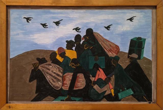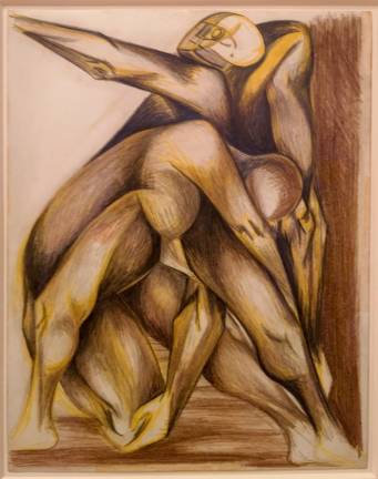 The show is filled with rare gems and poignant stories. If you missed Jacob Lawrence at the Metropolitan, ten of his works from “The Migration Series” are given a wall of their own. The Guggenheim is currently showing an early Jackson Pollock, “Mural,” from 1943. Fifteen even earlier pieces at the Whitney give a glimpse of the artist developing, trying out new materials, absorbing. Elizabeth Catlett and her husband Charles White traveled to Mexico and found in the muralists a way to commemorate and monumentalize African American experiences. William Gropper, Ben Shahn and others found inspiration for promoting the rights of laborers.