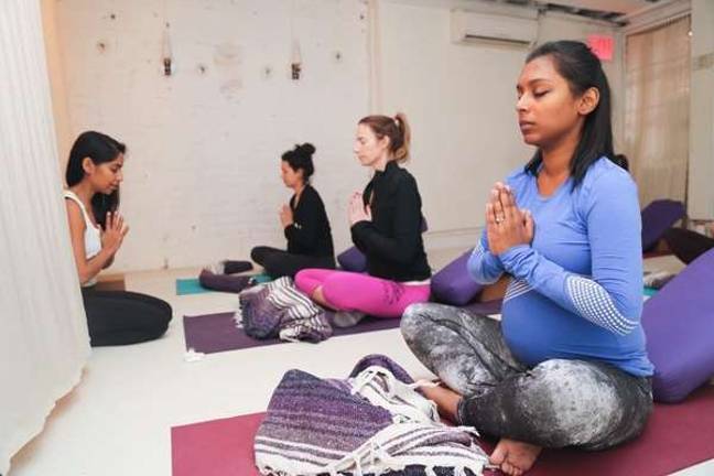 “I noticed that most of the time when you think about being pregnant, you think about sitting back and eating for two,” she explained, recounting the first prenatal yoga class she observed during her training. “But what motivated me was seeing pregnant women actually be active and sweat and how integrated that is to birth.”