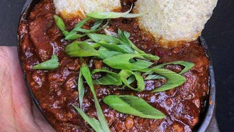Hugh Mangum, the culinary mastermind behind Mighty Quinn's Barbeque, is bringing his expertise back to Our Town's Art of Food Saturday, February 4th. The unique event challenges over 25 of the best East Side chefs to create a dish based on a piece of fine artwork curated by Sotheby's. Last year, Mangum did his research. He was paired with Hans Hoffman's “Untitled Seascape,” and pulled inspiration not just from the shapes in the painting, but also the artist's childhood home of Germany and adopted home of New York City, which he immigrated to in 1932. The result? A perfectly executed pastrami with spatzle and kraut. While we wait to see what Hugh is serving up this year, he's sharing one of his favorite recipes with us--Mighty Quinn's Texas Red Chili. To attend this year's Art of Food, happening February 10, visit: www.artofffoodny.com Mighty Quinn's Texas Red Chili In a large Dutch oven or stockpot… Brown following: 5 lbs beef stew meat 3 lbs ground pork Then add onions to sweat: 3-4 onions, chopped Buzz the following in a food processor and add to above: 1 tbsp ground cumin 15 cloves garlic 1 tbsp ground cayenne 10 jalapeños, halved 2 lbs plum tomatoes, diced Hydrate in water, seed and purée in a food processor. Then add to pot with above: 15 dried anchos chiles 2-3 dried New Mexico chiles Add to pot: 2 beers of your choice 2-3 oz chocolate of your choice. Bitter sweet recommended. After simmering for 3-4 hours and once meat is tender, make a slurry with the below and add to pot while stirring. Simmer an additional 20-30 minutes and serve. 2 qt water 1 c corn flour Mighty Quinns serves this with Beer “chicharone,” but that recipe is top secret.