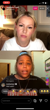 Kerrigan’s show titles are provocative and unsanitized. They capture the energy, urgency and honesty with which she delivers her message. Kerrigan said, “I’ve never had the platform that I have until quarantine. It felt completely tone deaf and insensitive to talk about anything other than Black Lives Matter.” During the show, Kerrigan dimmed her comedic persona to listen rather than direct the conversation. Careful never to claim expert status, Kerrigan created “Talk” to educate herself as much as her followers. She said, “If I’m giving my platform, that means I’m handing it off,” but rather than leave the show all together, she added “I wanted to be there, because it’s not on the Black community to teach us. We have to show up and listen.”