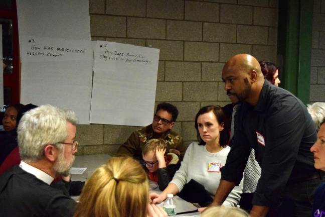 The attendees were broken into smaller groups to discuss their ideas on topics such as public safety, restorative practices, unity and bridge building, parking improvements, and youth engagement.