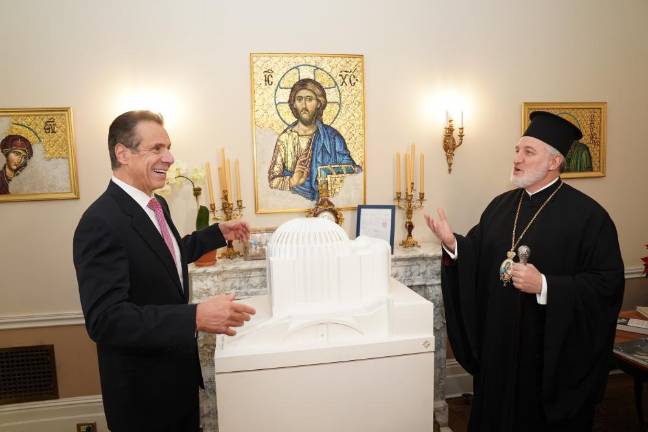 Governor Andrew M. Cuomo officially welcomed Archbishop Elpidophoros of America to New York City on Jan. 2, 2020 while announcing plans to resume the rebuilding of St. Nicholas Greek Orthodox Church and National Shrine at the World Trade Center.