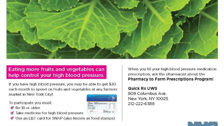 NYC pharmacies fill “prescriptions” for greenmarket produce for low-income residents with high blood pressure