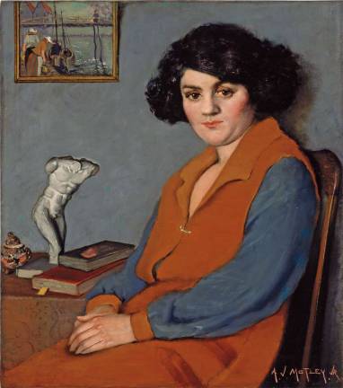 Motley was one of the first black artists to attend the School of the Art Institute of Chicago, where he received a rigorous academic education. He married a white woman, Edith Granzo, a neighborhood friend, in 1924. Two masterful paintings of his wife, “Portrait of Mrs. A.J. Motley, Jr.,” (1930), and “Nude (Portrait of My Wife),” (1930) — one formal, one a more intimate portrayal — are included in the show.
