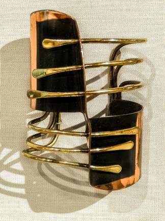 By the 1930s, American artists like Alexander Calder began to turn their talents toward jewelry. There's a hammered abstract wire coil reminiscent of his greatest sculptural works, along with a stunning silver necklace, at once modern and stylized and referencing timeless Asian, African, and Native American shapes and forms.