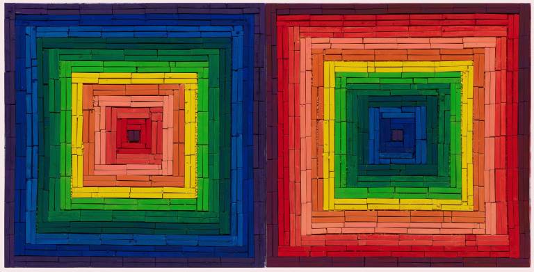 But the bread and butter of the show is, of course, the “Galleries” section, where hundreds of galleries present thousands of works. Look for James Turrell’s “Sunda Strait Diamonds,” a glowing blue window onto the artist’s consciousness at Kayne Griffin Cocoran. London’s Alison Jacques has a female artists-only booth, featuring works by Lygia Clark and Hannah Wilke. Internationally famous local twins, Doug + Mike Starn, fill Sweden’s Wetterling Gallery booth with their first U.S. solo exhibition since their rooftop installation at the Metropolitan Museum in 2010. If you’ve admired the Vik Muniz portraits in the Second Avenue Subway, here’s another chance to see his work. In “Metachrome (Double Scramble, after Frank Stella)” at Ben Brown Fine Arts Muniz creates an homage to Stella out of intensely hued pastel sticks and then photographs the results. He unites his background in sculpture, his reverence for art history and his photographic practice to create images that are at once about the process, materials and the end result. Scattered among the contemporary artworks are jewels by Willem de Kooning, Joan Miró and Roberto Matta.