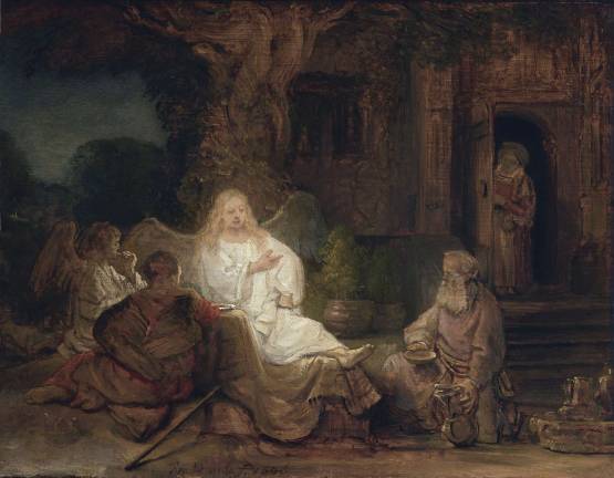 Part of the power of an artist like Rembrandt is his work’s ability to speak across centuries to timeless realities. Abraham’s story is one of loyalty and faith, but the idea of entertaining angels also occurs elsewhere in Scripture, and may have been in the artist’s mind. In Hebrews we’re told “Do not neglect to show hospitality to strangers, for thereby some have entertained angels unawares.” An enlightening thought for our and all times.