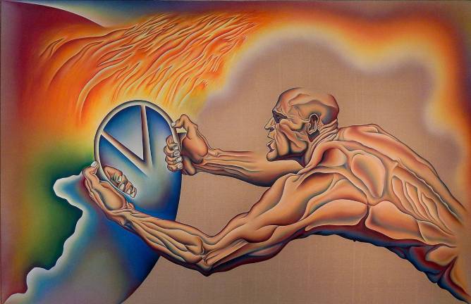 How did you come to the subject? I became interested in the gender construct of masculinity in the early 1980s after I made a trip to Italy and saw the great Renaissance paintings that I had studied. I thought, then, that if the Renaissance ushered in modern society, it also ushered in our concept of the heroic and the masculine. And so PowerPlay, which is a very large series of paintings, drawings, cast paper pieces, weavings and bronzes some of them in monumental scale, examines questions like why do men act like this, and what are the consequences of power as men have wielded it for other people, for the planet and for themselves?