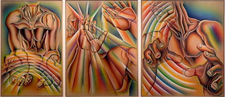 It’s been almost 40 years since Judy Chicago’s “The Dinner Party,” the monumental sculptural installation now on permanent display at the Brooklyn Museum, created a feminist tsunami that’s still rippling. Yet, the work of this mighty artist, writer, educator and activist is not often seen on the walls of museums and galleries in New York. It’s a shame. Her current exhibition at Salon 94, on view through March 3, is filled with wisdom and bite expressed through masterful paintings and seductive beauty. The works are rainbow-hued reactions offering moments of contemplation, and, like all of Chicago’s work, balance gravitas and grace.