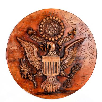The standout exhibit was dubbed “The Thing” by the Soviets, but we would recognize it as the Great Seal of the United States. It’s a duplicate of the wooden U.S. seal presented by “Soviet schoolchildren” to a completely oblivious U.S. Ambassador W. Averell Harriman in 1943. It hung in his Moscow office for years while the ingenious bug hidden inside of it (no power supply needed) eavesdropped. The FBI didn’t discover the listening device until 1952.