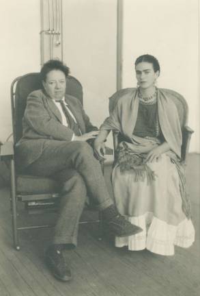 She cultivated a masculine look until she met Rivera, thereafter accentuating her feminine side with long hair, long dresses, hair ornaments and dazzling pre-Hispanic jewelry. She visited New York on several occasions, most memorably accompanying Rivera in 1933 when he was commissioned to paint a mural for the RCA Building at Rockefeller Center — a mural that was later destroyed because it included a portrait of Lenin, much to the chagrin of the Rockefellers. In 1946, she traveled to the city for a spinal fusion at the Hospital for Special Surgery.
