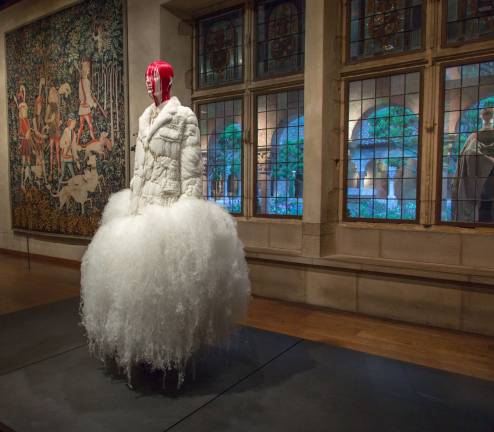A collaboration of The Costume Institute, The Met’s Department of Medieval Art and The Cloisters, “The exhibition situates costumes alongside religious artworks to provide an interpretive context for fashion’s engagement with Catholicism,” Bolton said. “Whereas the focus at The Met Fifth Avenue is on the pageantry of the Catholic Church, The Cloisters addresses the more contemplative and reverential aspects of Catholicism, fashions inspired by monastic orders as well as the holy sacraments of the Catholic Church.”