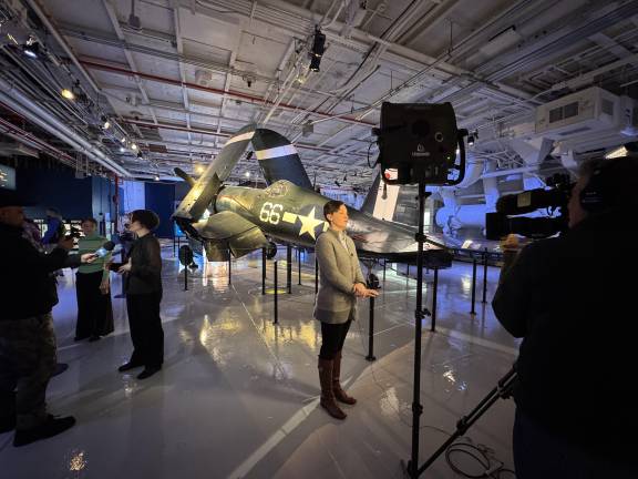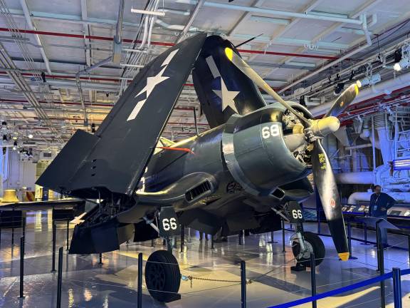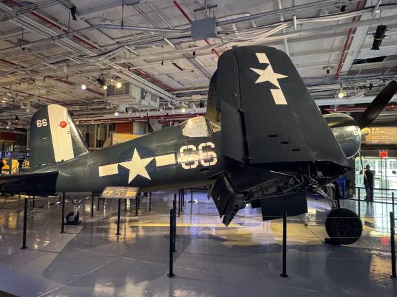 Featuring a rare FG-1D Corsair bomber plane from WWII, a huge new exhibit on the USS Intrepid features never-before-seen crew artifacts and video diaries. The Corsair was the plane most frequently flown off the Intrepid during in WWII.