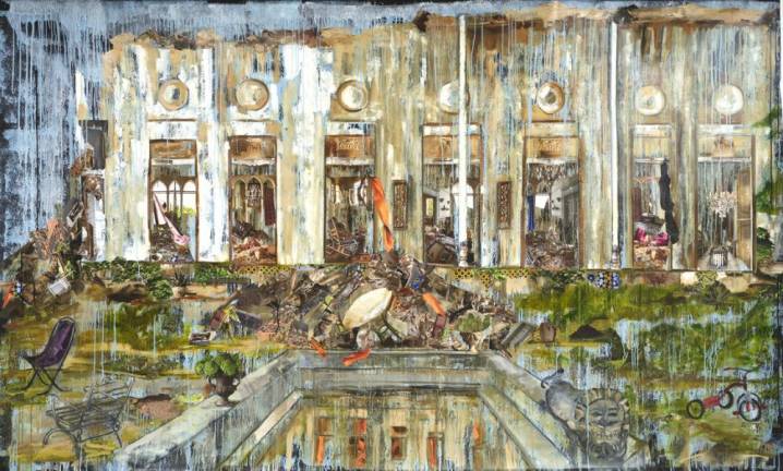For a different city altogether, head to Leila Heller Gallery for “Parinaz Eleish Gharagozlou: Amnesia of a Forgotten City.” Gharagozlou mixes media (acrylic, oil, pencil, paper, collage and more) with literature (via quotes from Orhan Pamuk, Sohrab Sepehri, and Elie Wiesel), plus imagination and fantasy to depict a metropolis of the mind and memory. Streets and buildings unfurl and unravel at once, as lines and strokes both build and decompose. Her “Amnesia Series” locales escape memory, but linger in the mind.