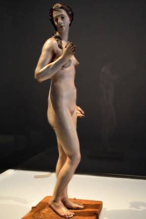 Unlikely associations emerged among the 120 works filling two floors of the Met Breuer. “These sculptures are placed in conversation with one another, speaking to the age-old conundrum of what realism can be and the different tactics that artists used to blur the distinction between the original and the copy, between art and life,” said Wagstaff. She described “the use of color to mimic skin ... casts taken from real bodies, dressing sculpted figures in clothing, the articulation of movable limbs, the construction of automated mannequins and ‘womankins’ and even the incorporation of human blood, hair, teeth and bones.”