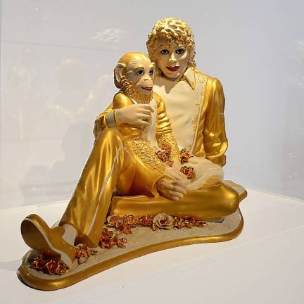 “Shrine of the Virgin,” a gilded figure from about 1300 that opens on hinges to reveal a figure of Jesus inside the sculpture of Mary, shares a case with contemporary artist Damien Hirst’s “Virgin Exposed,” a vividly colored cutaway view of a pregnant woman, eerie, though recalling a scientific anatomical model. Jeff Koons’s porcelain “Michael Jackson and Bubbles” is placed next to a frilly, gilded Meissen work, “The Judgment of Paris.” Such juxtapositions awaken new thoughts about contemporary artists and how far back they might be reaching for inspiration, whether consciously or not.