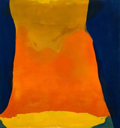 Frankenthaler the PioneerPerhaps the best way to see the show is to stand in the center of each gallery and just turn in place. The spilling-overness of the colors permeates the spaces and touches the spirit. Then, there’s plenty of time to step up to each work, look carefully, read the label, and let it speak to you. Helen Frankenthaler’s 1966 “Orange Mood” has a magnetic charge that draws you from across the room. Frankenthaler, like Jackson Pollock, liberated paintings from the easel, laying canvas on the floor, and then pouring, pulling, puddling and painting with thinned, vibrant acrylics. Rich oceans of lapis create a channel for a rising swell of warm golden oranges. The “mood” was hers when it was made. Now it’s yours for reflection.