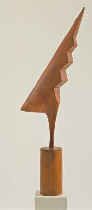 “The Cock” (1924), another member of MoMA’s aviary, was carved from a single piece of red cherry. Brancusi captured its essence with a dramatic serrated form suggesting a rooster’s comb — and full-throated crowing.