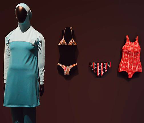 One of the strong statements that’s made in the exhibition is about women’s bodies, in particular, being a battleground for culture wars.That is a theme that recurs many times in the exhibition, the theme of the body being a battleground.... It’s especially strong in the area about modesty. There is a juxtaposition in the exhibition that’s very powerful. It’s between the bikini and the burkini. They’re next to each other, and the reason for that is because they represent two different instances of attempts to control female bodies. In this case, we’re not talking about the imposition of the item unto and of itself, but rather legislation around it.