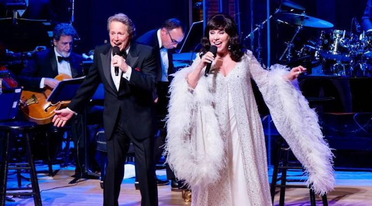 The concert was performed by the couples’ singer-composer son, David, and Tony award winner Debbie Gravitte, taking on the Eydie “role.” They were magnificently accompanied by a full orchestra.