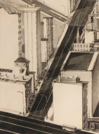For all the sweets on display, though, this compact show packs a bittersweet punch. Thiebaud, now 97, evokes nostalgia for a lost New York: The delicatessen counters, the corner grocery stores, the pastry cases and cake stands that have all but disappeared from a city with a dwindling number of diners. There’s a reason he’s been called (perhaps with a sneer) “the Walt Whitman of the Delicatessen” for his portrayal of scenes once familiar to countless New Yorkers.