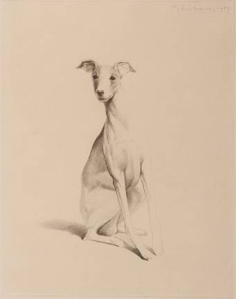 His favorite, and that of many others, are the depictions of candy apples. “Nine Jelly Apples,” from 1964, is a richly colored watercolor whose subjects look freshly dipped, juicy and glossy. Although all his watercolors fairly glisten, this work is all bright, sweet stickiness. In “Candied Apples,” the same subject appears in pen and ink, as stark and iconic as a Japanese ink drawing. The last in this series, “Three jelly apples,” also from 1964 , is a sedate pencil work that brings out the brittle quality of the fruit. “Candy Sticks,” from the same year, is all colored swirls, stripes and shiny surfaces in pastel, and as sedate, pure forms in pencil.