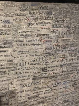 A focal point is Terese Agnew’s recently installed “Portrait of a Textile Worker” (2005), a monumental hanging fashioned from garment labels — some 30,000 of them stitched together and crowd-sourced by the artist, who asked a wide range of people to cut the labels out of their clothing and donate them to the cause.