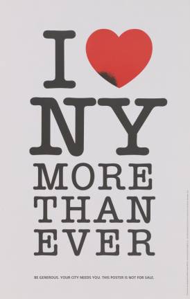 Peter Stuyvesant’s map of his farm property. Milton Glaser’s “I [Heart] New York More Than Ever” poster following 9/11. A coffee dispenser from Horn & Hardart. A pillbox hat designed by the late Bill Cunningham, “William J.” A New Year’s Eve invite for an inaugural ride on the Second Avenue Subway — and a silver tray mapping surveillance cameras in Manhattan.