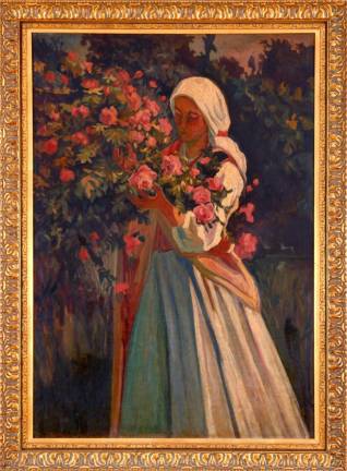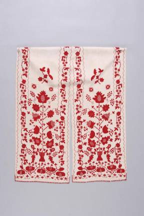 Beauty fills these rooms. An ode to spring and a balm in these uncertain times, “In Bloom: Nature and Art” fills the main galleries on the first floor and explores the floral motif in Ukrainian paintings, costumes, ceramics and textiles, such as kilims, “rushnyky” (ritual cloths) and embroidered shirts for men and women.