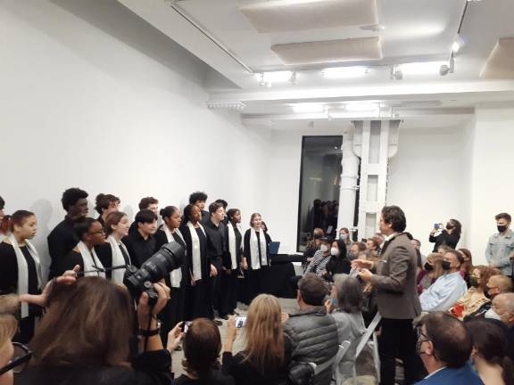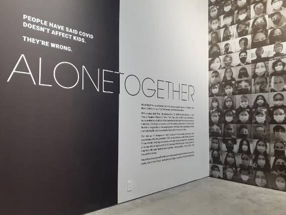 As the music draws you in, the striking mural to the right, in black and white of the many faces of the children – more than 500 members of the Chorus participated – all in masks, demands pause, their solemn eyes an invitation into their thoughts and souls. Located at the High Line Nine gallery nestled under the famous former rail tracks-turn-park in West Chelsea, the exhibition was designed to do exactly that: pull in and captivate the viewer to interact with the displays now on view until December 19.
