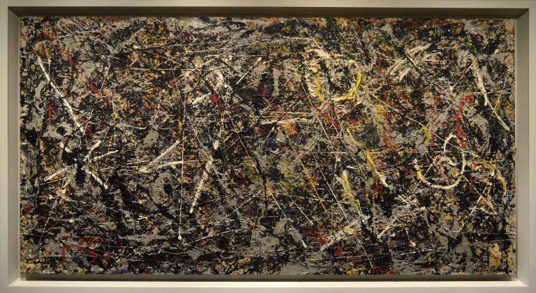 The exhibition concludes with the spectacular “Alchemy” by Jackson Pollock. Crowds lingered before the wall-filling abstraction, which hasn’t been seen in New York in almost 50 years. A mini-exhibition within the exhibition focuses on this masterpiece, considered one of Pollock’s greatest works. Videos and documentary materials give a time traveler’s peek at the making of a painting that changed the course of painting. The energy coming off this canvas is palpable. Ardent lines loop and stride across the composition. Pollock’s every mark seems like an exclamation point. Poured, painted, sketched, pushed, pulled, stomped on, the history of every action that can happen between hand, material and picture plane is recorded on its complex surface.