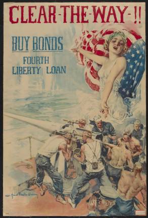 The government’s Department of Pictorial Publicity led the visual campaign from headquarters at the Society of Illustrators, under the direction of its president, Charles Dana Gibson, creator of the “Gibson Girl.” Gibson and his team of 300 artists, illustrators and ad execs designed posters, but also banners, ads, buttons and cards for store windows, all in the name of patriotism.