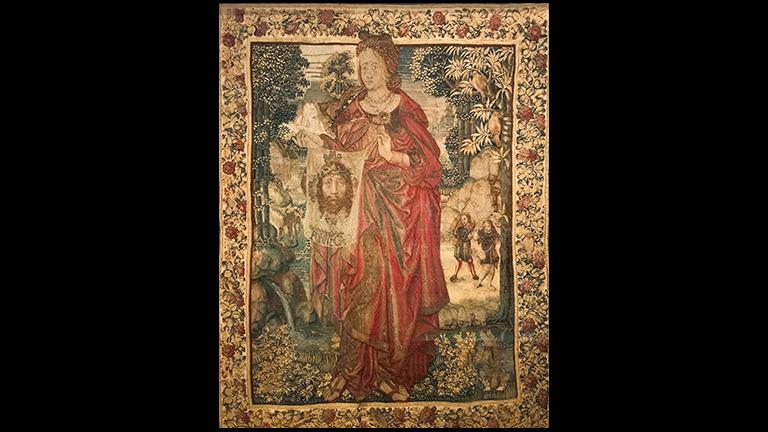 A tapestry of Saint Veronica hangs at the center of the gallery, claiming pride of place. A similar piece belonged to Catherine of Austria, Queen of Portugal, niece of Catherine of Aragon, first wife of Henry VIII, King of England. Though the value at the time was a respectable 52 cows, a brush with fame like that ensured it landed in a famous museum's collection.