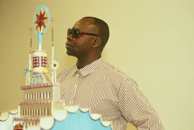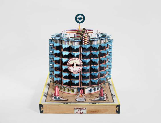 Kingelez’ 30-year career was as improbable as his art. This self-described “designer, architect, sculptor, engineer and artist” was born in Kimbembele-Ihunga, a rural village in the Belgian Congo, and educated in missionary schools. About 10 years after the country gained independence from Belgium, Kingelez, then in his early 20s, moved to the capital, Kinshasa, to study industrial design amid an environment charged with post-freedom energy and enthusiasm about the future.