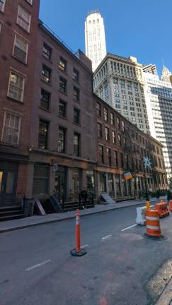 If they don’t work or live there, it’s fair to say that most Manhattanites don’t spend much time far, far downtown. What is there in the Financial District or around the Civic Center I can’t find elsewhere, besides ferry terminals, courts, bureaucracy and a jail? Plenty, including the unrivalled, deeply layered view of New York’s rich history, including numerous mid-19th century buildings, one can find in the twists and turns of Pearl Street. Among its many points of interest: the birth site of Herman Melville; Fraunces Tavern museum; Hanover Square; 76 Pearl Street, from which one one of city’s most vexing murder mysteries—the 1997 vanishing of artists Camden Sylvia and Michael Sullivan—arose; the site of the old Manhattan slave market, at Pearl and Wall Streets (its memorial plaque is at Water Street). Pearl continues its northerly course until past the Brooklyn Bridge, when it veers west, where it veers sharply west towards the state and federal court buildings and Thomas Paine Park.