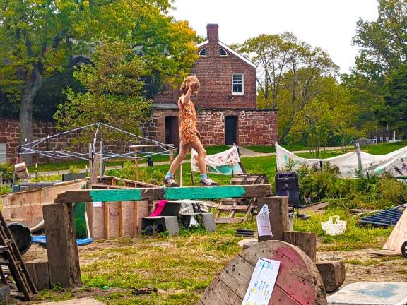 It could be. For the mostly six to twelve-year olds engaged in “self-directed” play at The Yard, the tire and lumber-strewn adventure playground tucked into the northeast corner of the inviting greenspace, anything is possible across the water.