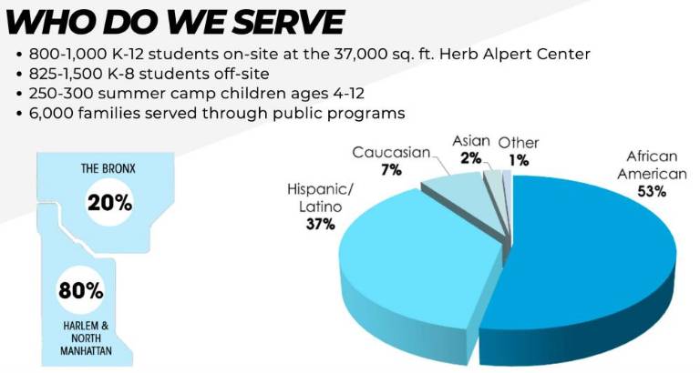 The school’s 800 (now back) on campus students come mostly from Northern Manhattan and the Bronx and study everything from dance, music and vocals, to digital art and comic book making.