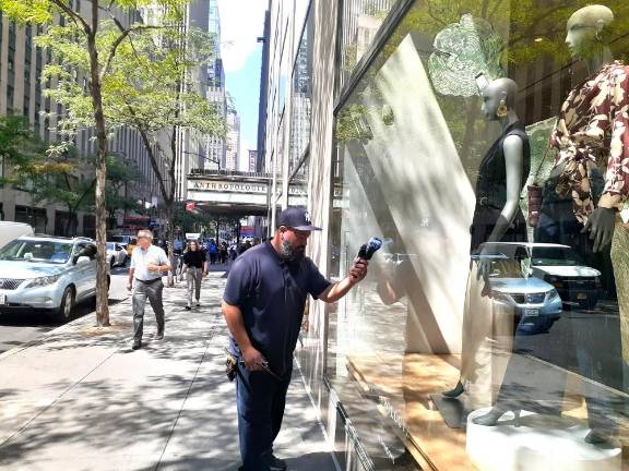 Each building takes about a month to complete, and his work routinely takes him up to the world-famous Top of the Rock attraction at 30 Rockefeller Plaza.