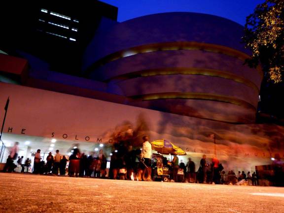 It’s the night of a million museums. No, it only feels that way, but it’s now a great New York night, one with open museums and openly enthusiastic visitors embracing them. Free access to famed institutions along Fifth Avenue, complete with art activities for kids and live musical entertainment. Also, an additional benefit for walkers: no cars.
