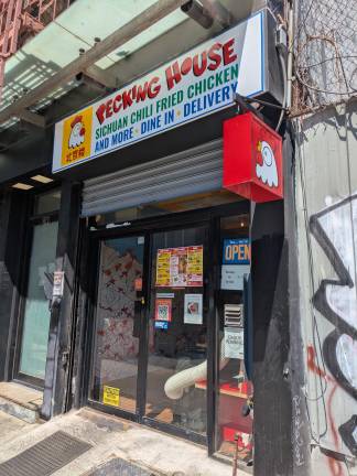 Bock-bock! That’s the sound of a chicken, which is a bird whose popularity can’t be overstated. Indeed, one might rightfully call New York City “chickentown” for the abundance and diversity of fowl its restaurants now offer. In Manhattan, where once kosher chickens reigned supreme, one can nearly travel the culinary world on chicken alone, especially if you like it fried and spicy. Enter Pecking House, a small shop with a hilarious sign, nestled in the shadows just north of Mechanics Alley and the Manhattan Bridge. That’s just one thing about chicken lovers: They’re not afraid to show it (a fact also exemplified by the terrific Vietnamese chicken pho specialist, Pho Ga Vang, on nearby Market Street). The brainchild of Eric Huang— whose Taiwanese-American family ran the Peking House in Fresh Meadows, Queens—and Maya Ferrante, a former co-worker of Huang’s at Gramercy Tavern, Pecking House offers a personal, Sichuan-influenced spin on Nashville-style hot chicken. Quarter chicken, half chicken, and a number of chicken sandwiches anchor the menu, which also offers some cauliflower dishes; a mushroom po’boy; a “ma po tofu molete sando” with spicy yuba, avocado, and onion; and some provocative soul-food-inspired sides.