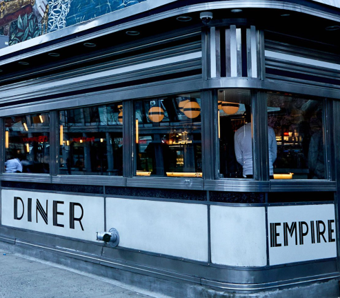 One of the quintessential railroad-car-style diners, this long-popular West Chelsea institution continues to live up to its acclaim. This is no small relief, for when this reporter was but a child himself, he wondered about the railroad-car diners like the Empire. How the heck did they do that?! Did there used to be more train tracks here, or did railroads sell their retired passenger cars, which were later moved? The answer, though slow in coming, was that railroad-car diners were always ersatz, and simply followed a design that was both affordable for restaurateurs and popular with customers. (The Empire is reputed to be a 1946 Fodero Dining Car model.) In the 1940s, Manhattan may have had a dozen, maybe two dozen, such establishments, mostly sited—like the Empire—in or very near industrial, shipping, and warehouse areas. Though the longshoremen and the freight handlers who worked the nearby High Line are long gone from this part of Chelsea, the diner ethos remains: quality American grub at decent prices with an emphasis on breakfast, which at the Empire is served until 4pm, a boon to parents and late risers alike. For the drinking set, the Empire—unlike many diners of the Manhattan’s working-class past—offers an enticing selection of tequilas, scotches, cocktails, and mocktails. Bottoms up!