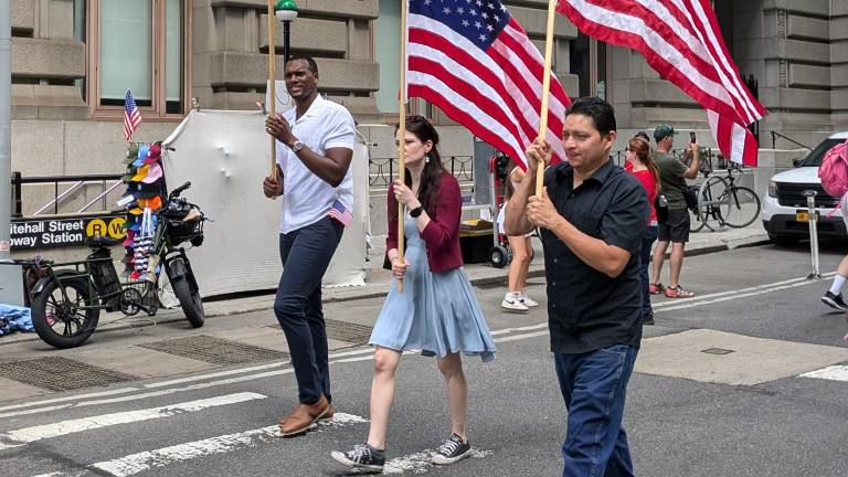 Quiet as it’s sometimes kept, there are Fourth of July parades in New York City, including a small but wondrous one that’s been organized by the Lower Manhattan Historical Association since 2015. The idea itself wasn’t new: Independence Parades were held in Manhattan for much of the 19th and 20th centuries but with patriotism withered by the malaise of Vietnam and Nixon, the tradition eroded in the 1970s. Happily revived, the current version begins in Battery Park, near where the city itself began as New Amsterdam, and continued to grow with immigration, with Castle Clinton, formerly known as Castle Garden, serving as US immigration processing depot from 1855 to 1890. Last year’s parade—which featured New York State Assemblyman Charles Fall, the son of immigrants from Guinea, West Africa, as Grand Marshal—included music and dance by the energetic, mostly Black teenagers of the Factor Marching Band; NYPD bagpipers; numerous marchers in vintage military uniforms; Chinese-American veterans from the Kimlau American Legion Post of Chinatown; and various others from kids to seniors. Together, everyone braved the heat and humidity to wend their way through the downtown canyons before ending up at Pier 17 for speeches, more music, and ecstatic rehydration.