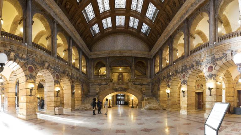 Because admission is free (as with many other government buildings, one does have to enter through a security screening), visiting the Hall of Records building makes it an excellent part of a multi-stop day to other nearby landmarks, including the African National Burial Ground Monument just around the corner, City Hall (free tours of which are offered weekly), the Brooklyn Bridge, and, just slightly farther away, Columbus Park—formerly Mulberry Bend, the locus of the famously iniquitous Five Points district—which is just steps from the historic heart of Chinatown at Pell and Doyers streets. Dumplings, anyone?