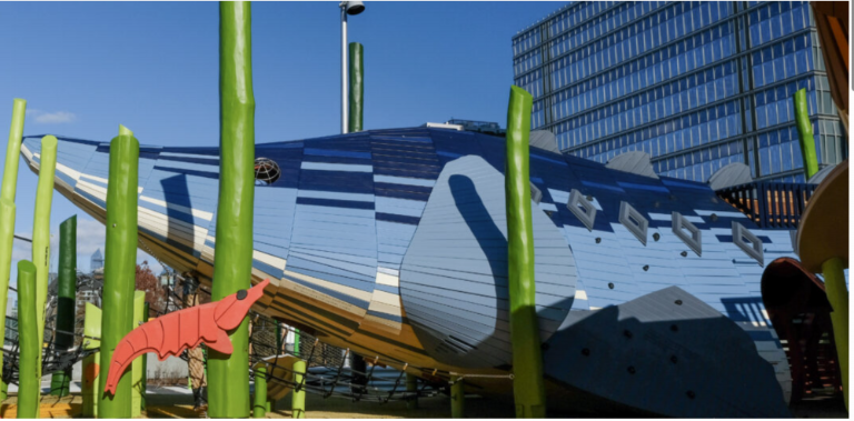 “There are two royal fish so styled by the English law writers,” wrote Herman Melville in the “Heads or Tails” chapter of Moby Dick. “The whale and the sturgeon.” Even if, contrary the novel’s hilarious “Cetology” chapter, whales aren’t really a fish, sturgeon certainly are and now two huge sturgeons—one Atlantic, one shortnose—are the centerpiece of a 4,000 square foot marine science-themed playground opened this past January. These play structures have both inside and exterior features to explore, while additional play equipment based on nature motifs surround it for variety. While the playground can get crowded—it’s Manhattan, of course it’s crowded—a bigger problem is getting one’s excited child to leave. Said one exasperated mom, “Call me Ishmael!”
