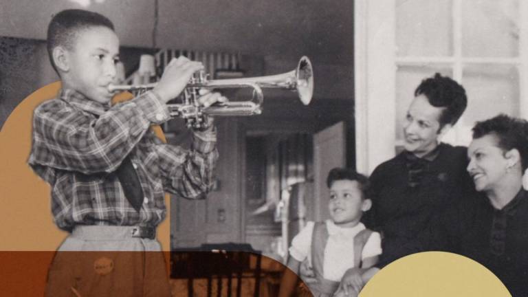 When I was in the fifth grade, there was a musical aptitude test, and so my best friend, he played clarinet, so of course, I wanted to play the clarinet also. But they ran out of clarinets, so all they had left were the accordion and violin, which I did not want to do. But ironically, my mother’s brother had a trumpet, because he played the trumpet, he was one of the Cotton Club’s boy dancers. The whole family was in show business. But the way I started playing the trumpet is my mother took me down to hear Louis Armstrong and took me backstage to meet him. I was in the fifth grade, I had never touched an instrument before.
